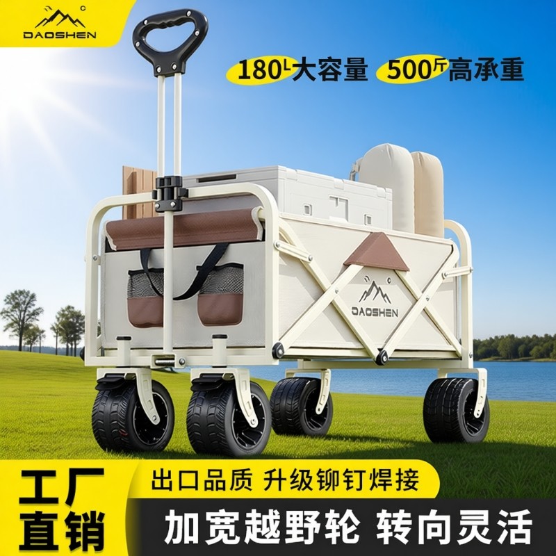 露营车户外可折叠推车营地车野餐车拖车野营超大手拉杆摆摊小推车