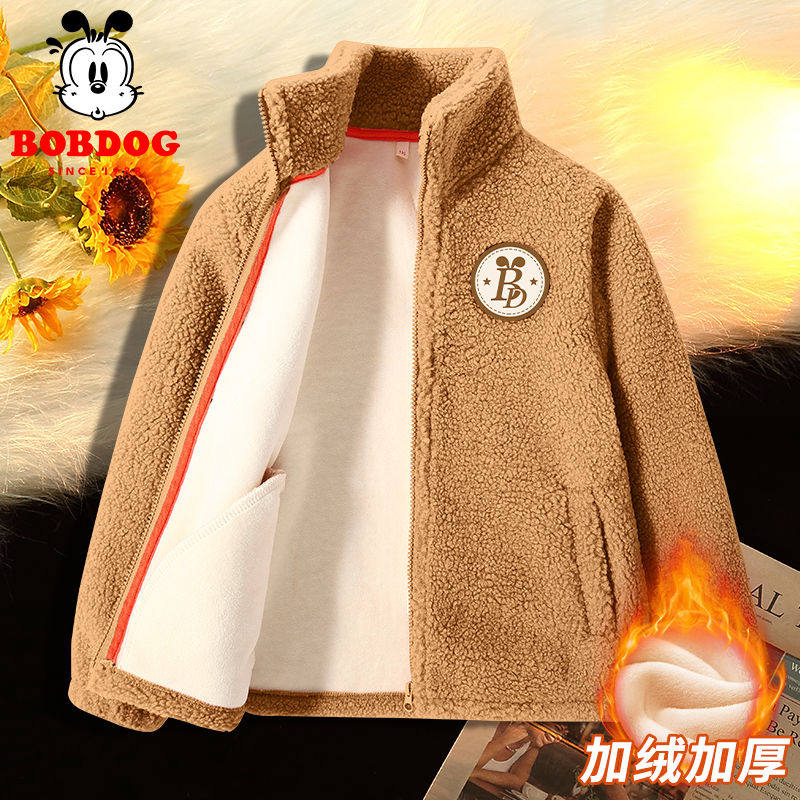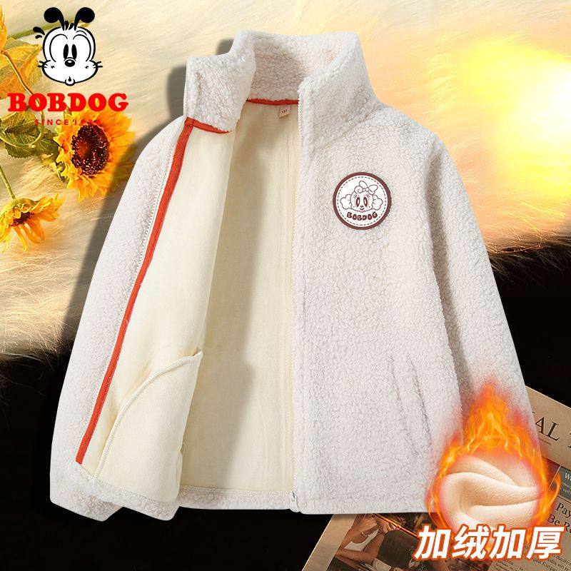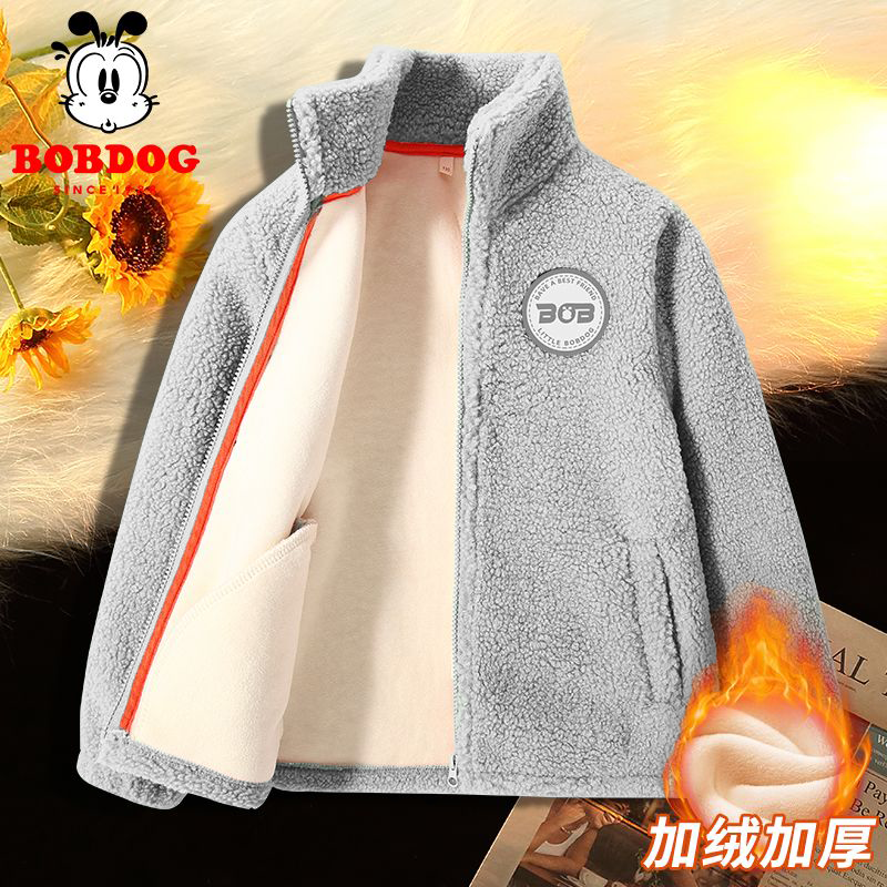 巴布豆男童外套加绒秋冬2025新款冬季颗粒绒加厚开衫保暖儿童冬装