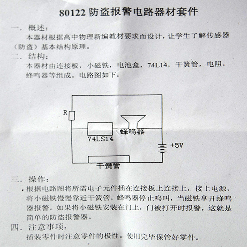 防盗报警电路器材套件套装高中科学教具实验材料教学仪器实验器材教学演示器