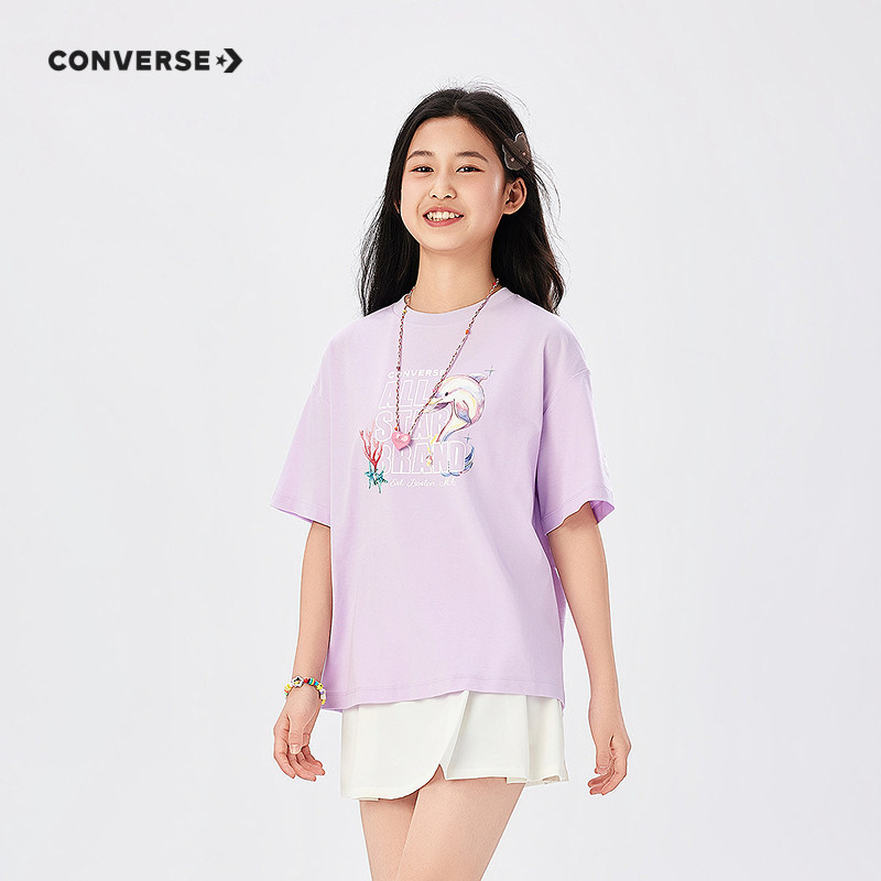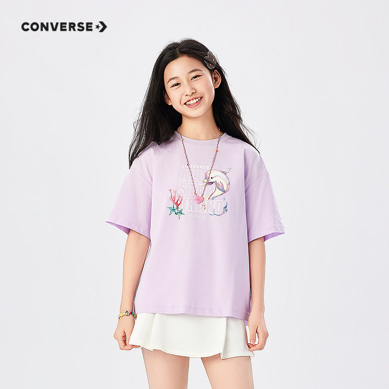 匡威童装女童短袖T恤2026夏季新款休闲宽松日常简约印花潮青少年