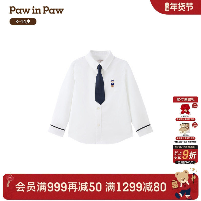 【全棉】PawinPaw卡通小熊童装26年新款春季男童儿童衬衫宽松