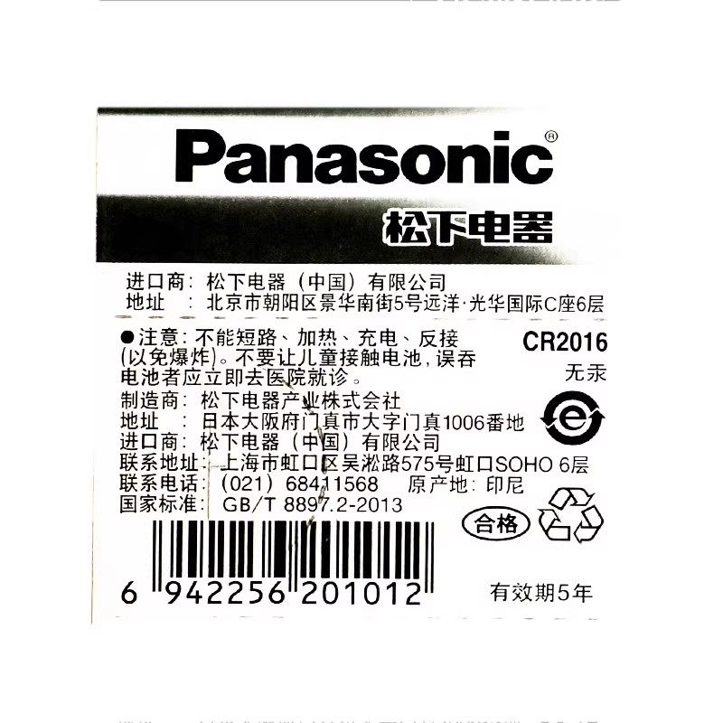 松下纽扣电池5粒CR2032/CR2025/CR2016电子3V适用摩托汽车钥匙遥控器CR1620/CR1220/CR1616/CR1632/CR2450