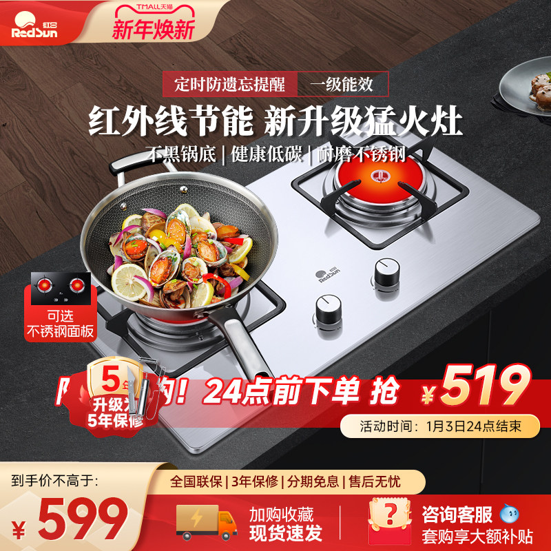 红日燃气灶双灶家用不锈钢煤气灶嵌入天然气液化气猛火炉具红外线