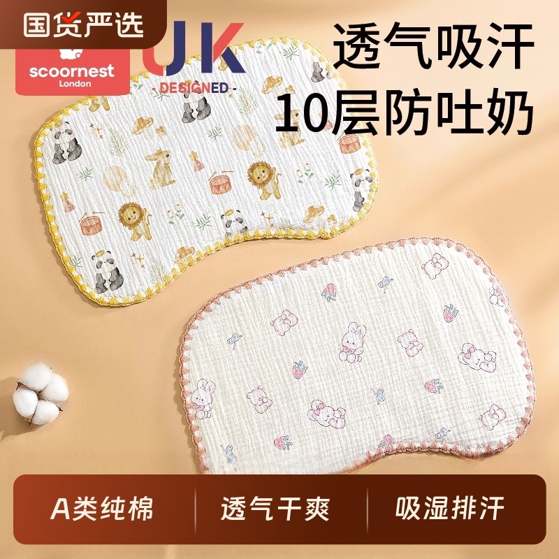 贝肽斯新生儿云片枕头婴儿纯棉纱透气吸汗宝宝0到6个月防吐奶枕巾