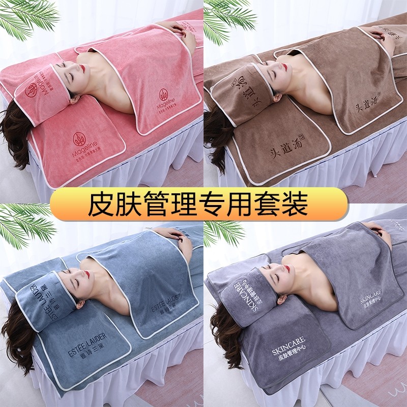 ZZ美容院毛巾美容床包头巾浴巾皮肤管理三件套枕巾用品大全绿色