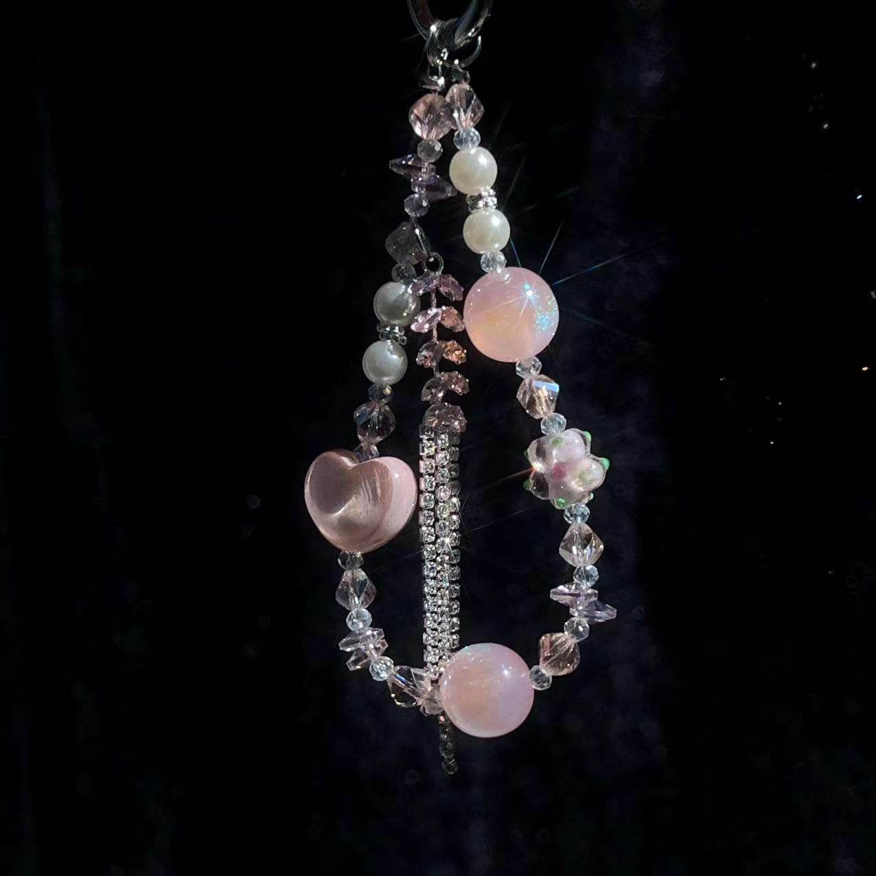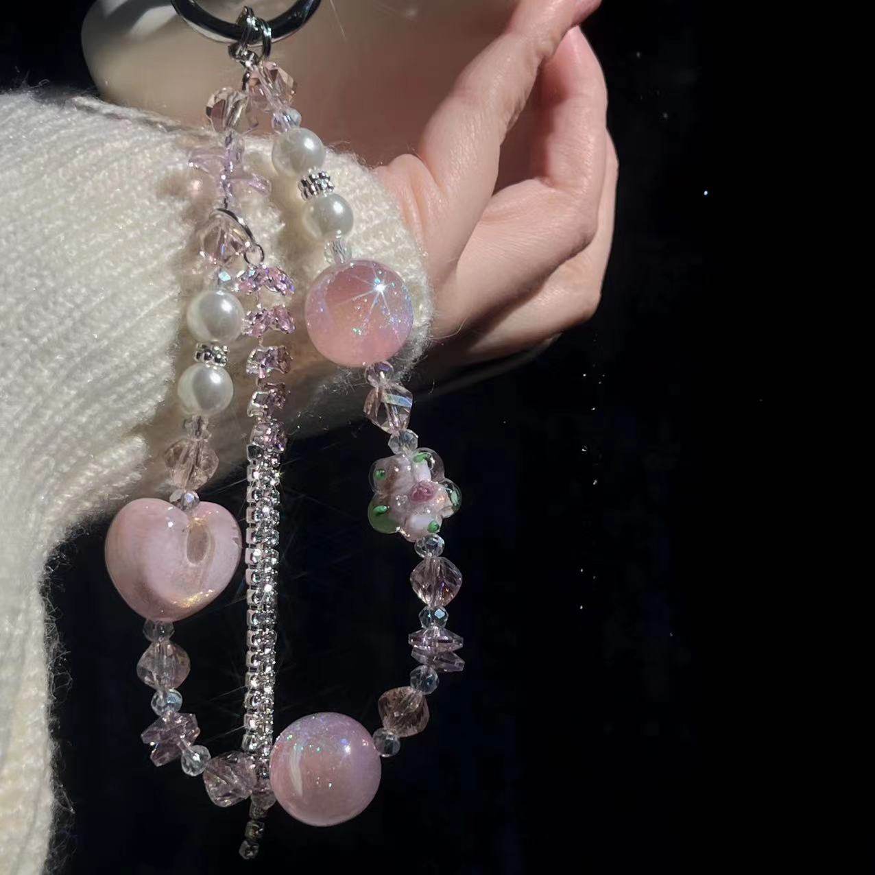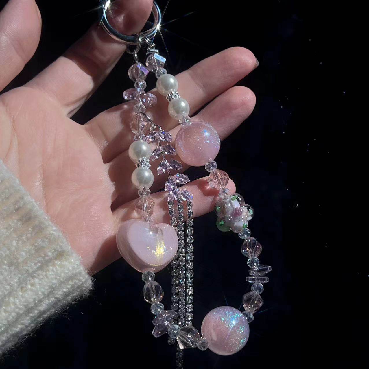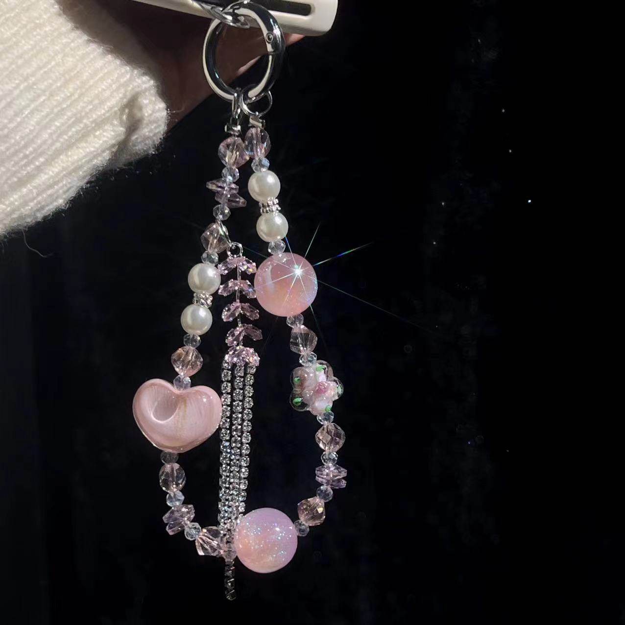 超仙气流苏链条手机链可爱爱心琉璃花串珠手提手机链包包挂件