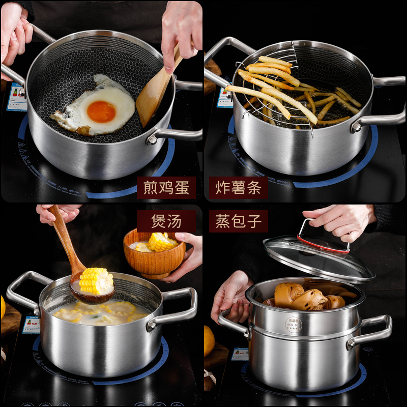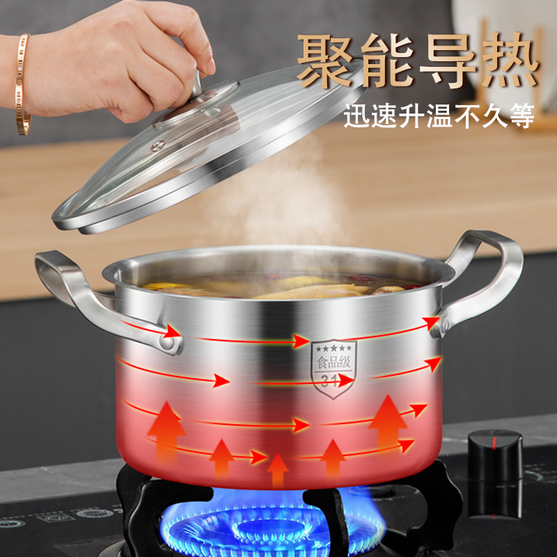 加厚不锈钢汤锅小煲汤锅具不粘锅奶锅燃气电磁炉商用加深家用煮粥