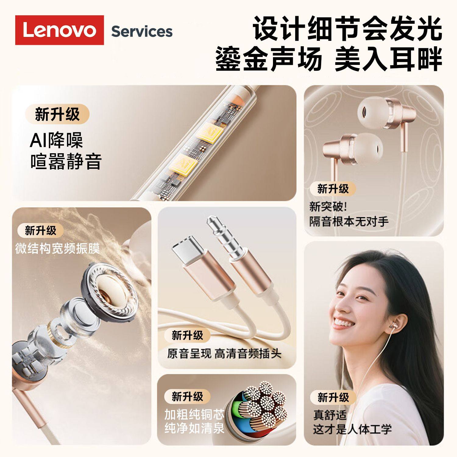 联想YF21入耳式有线耳机K歌线控降噪学生Type-C适用苹果小米华为