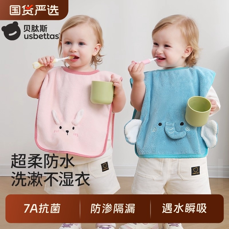 贝肽斯儿童洗漱巾宝宝洗脸刷牙防水围兜毛巾防湿神器四季用吃饭