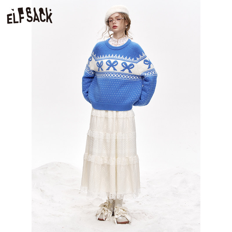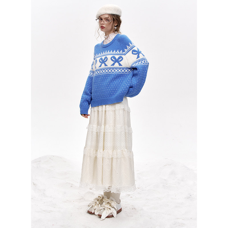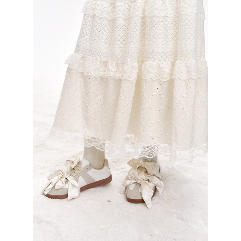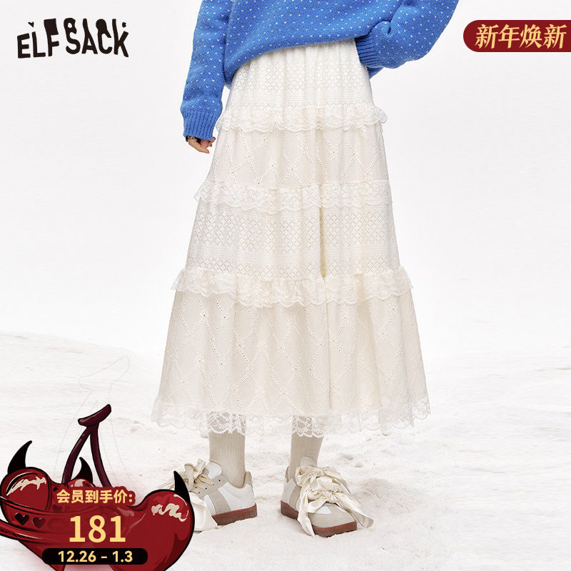 妖精的口袋白色蕾丝甜美半身裙女2025冬季新款a字显瘦蛋糕裙长裙