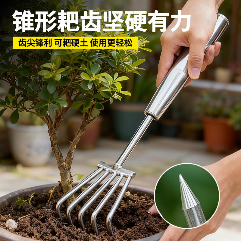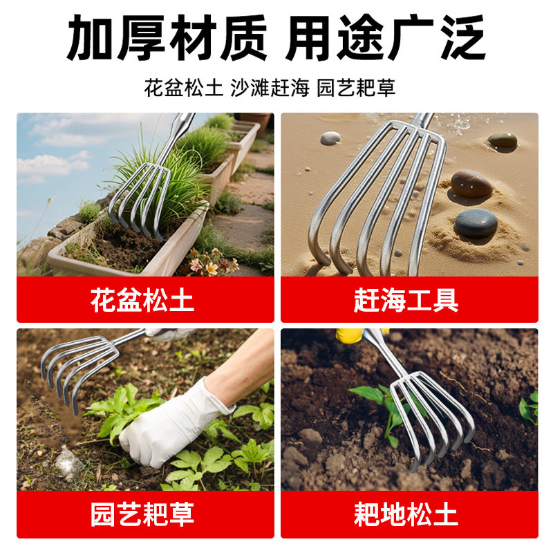 松土小耙子不锈钢松土专用神器翻土园艺工具多齿翻地赶海种花工具