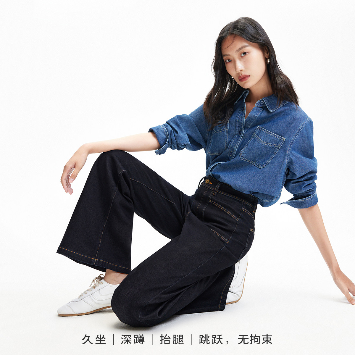 四面弹丹宁色牛仔阔腿裤25年新款宽松显瘦牛仔长裤89173