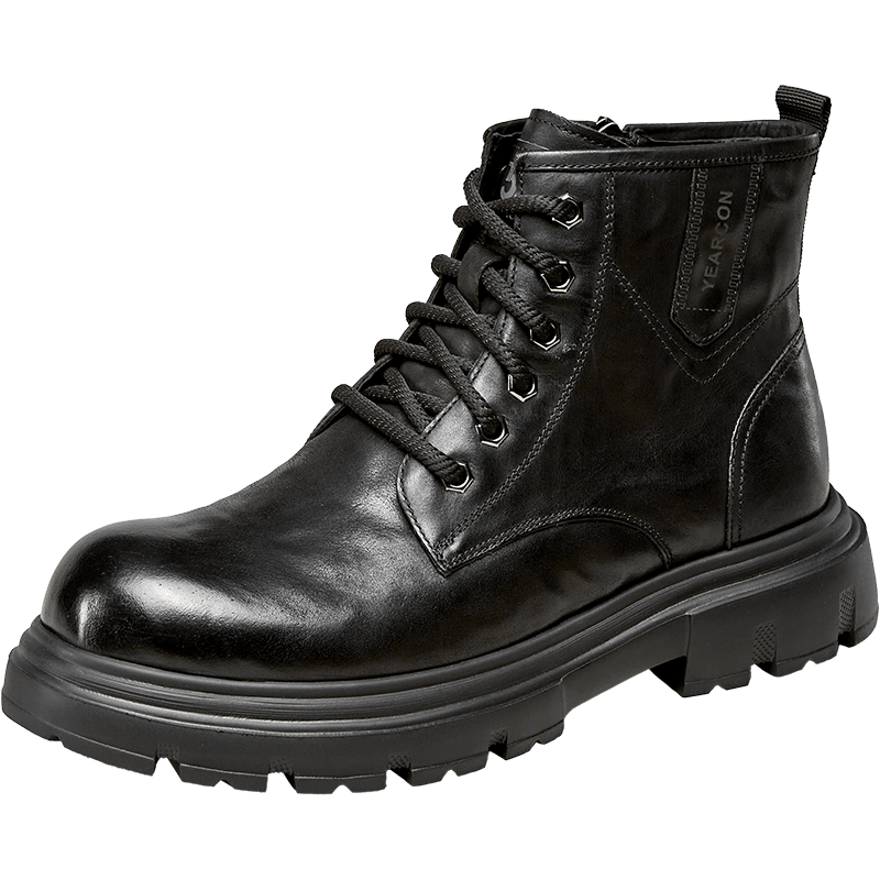 意尔康男鞋2025冬季真皮马丁靴男士中帮靴子休闲男款高帮皮鞋加绒