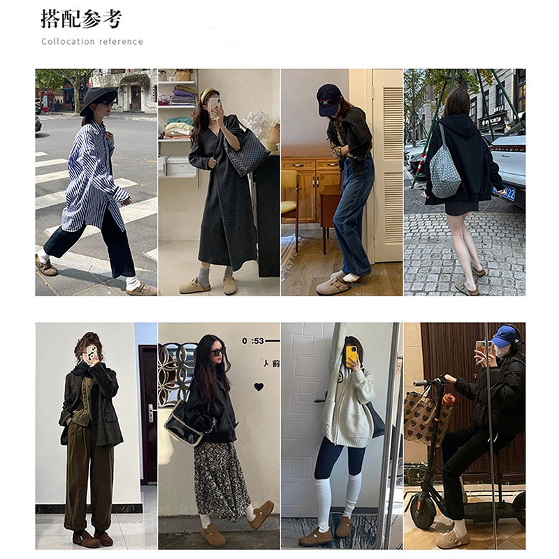 叁叔家~内增高勃肯鞋女加绒秋冬保暖毛毛半拖外穿厚底博肯鞋