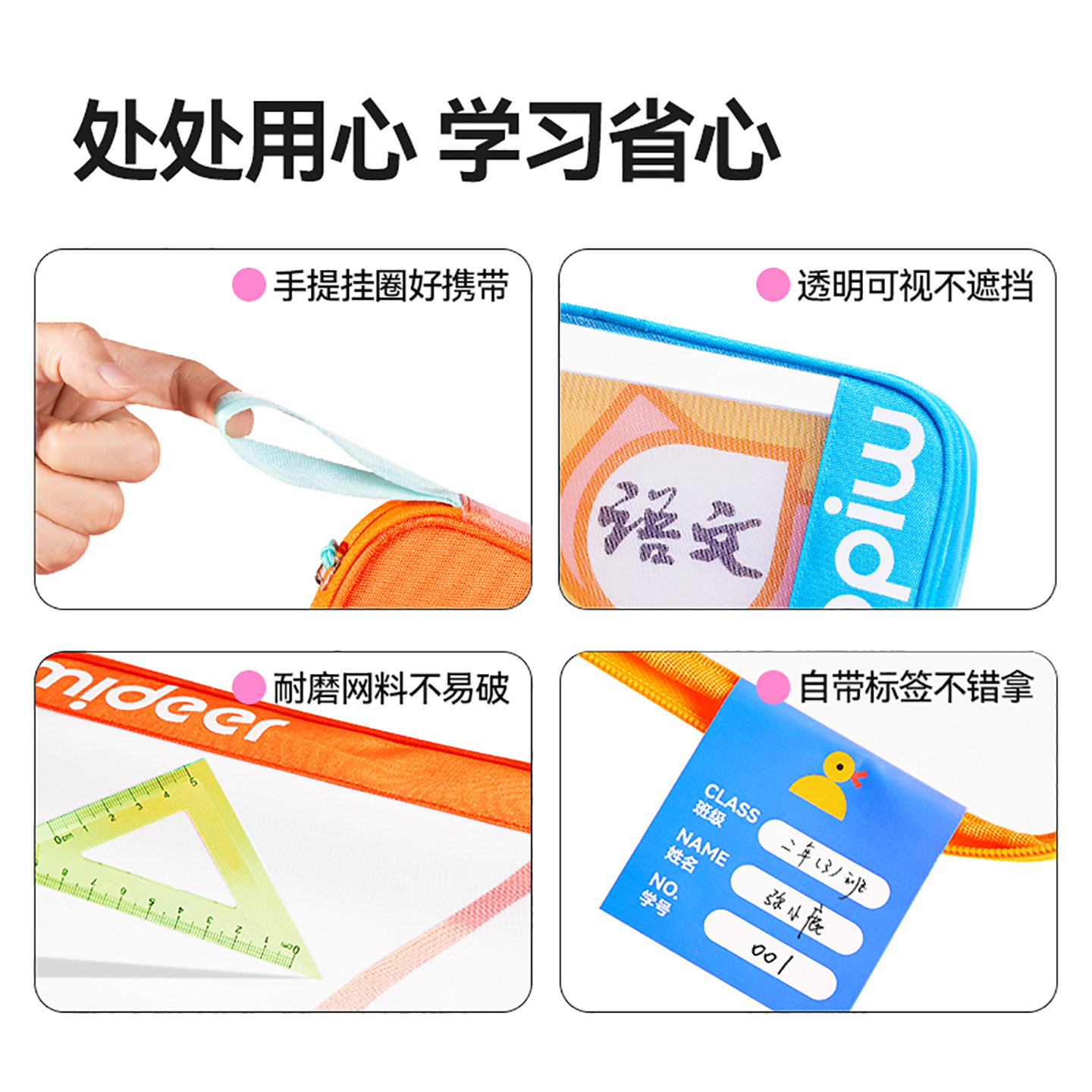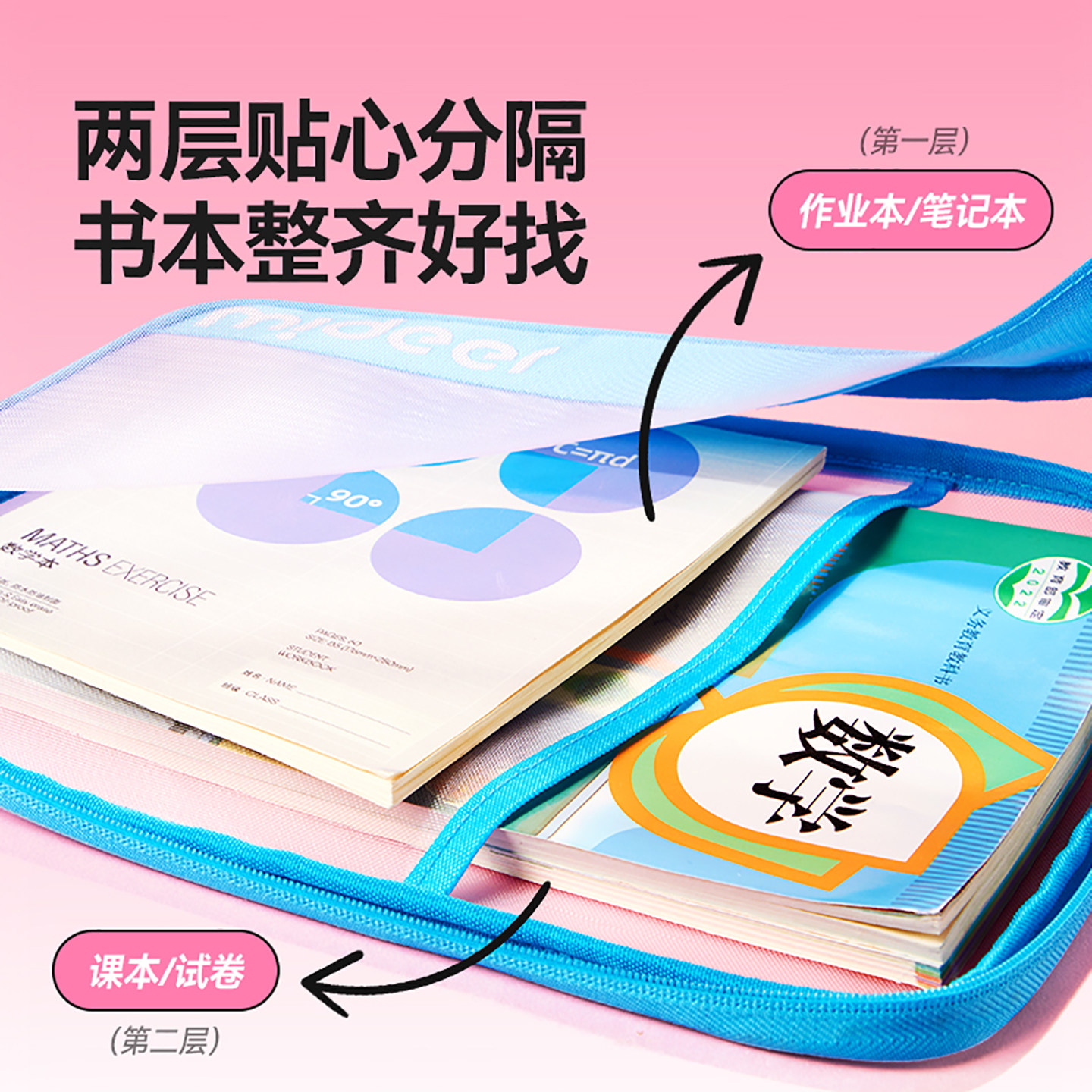 mideer弥鹿小学生文件袋学科收纳袋透明拉链式大开口课本分类袋双层儿童科目试卷袋书本补习袋文具资料袋
