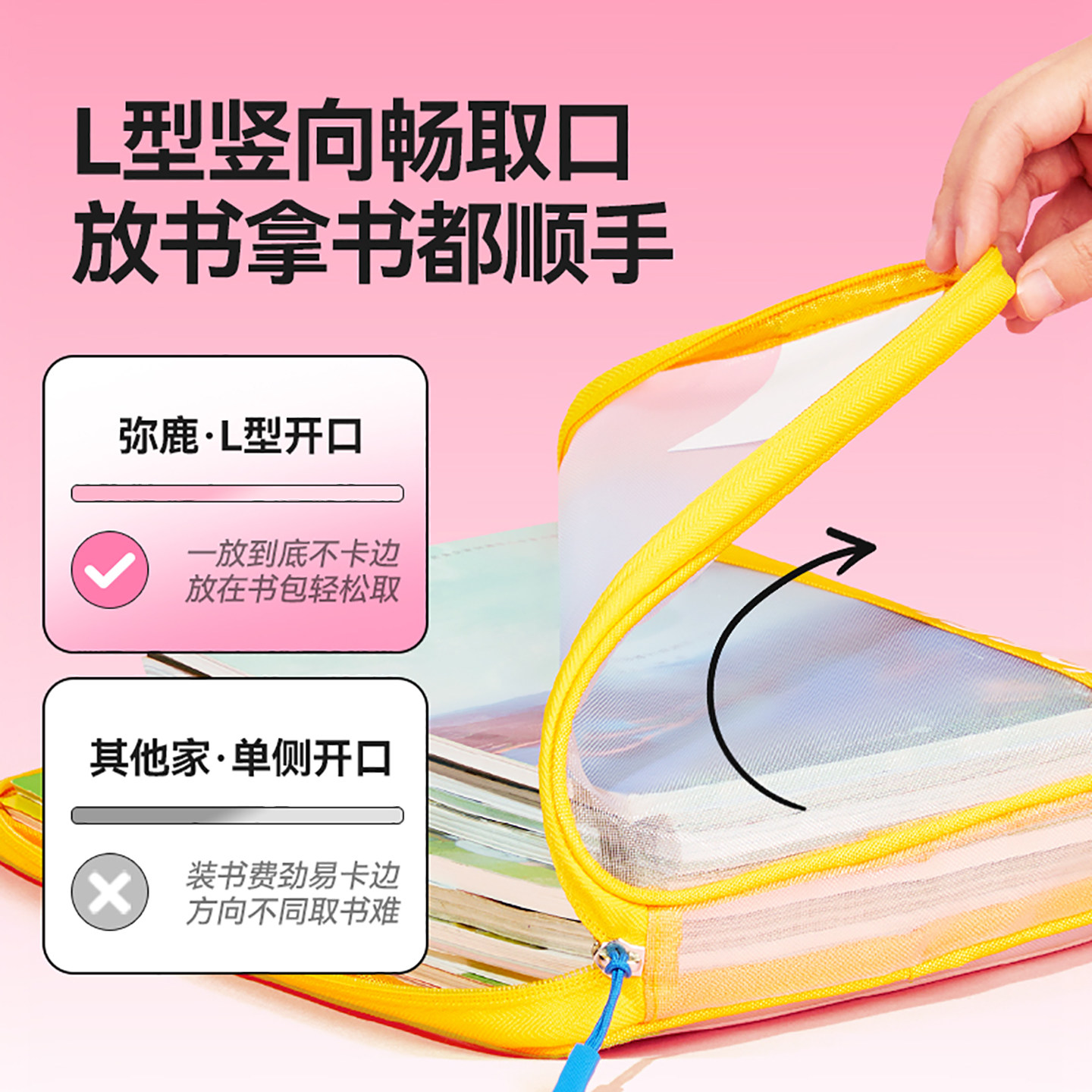 双层分区收纳 L型透明拉链式大开口