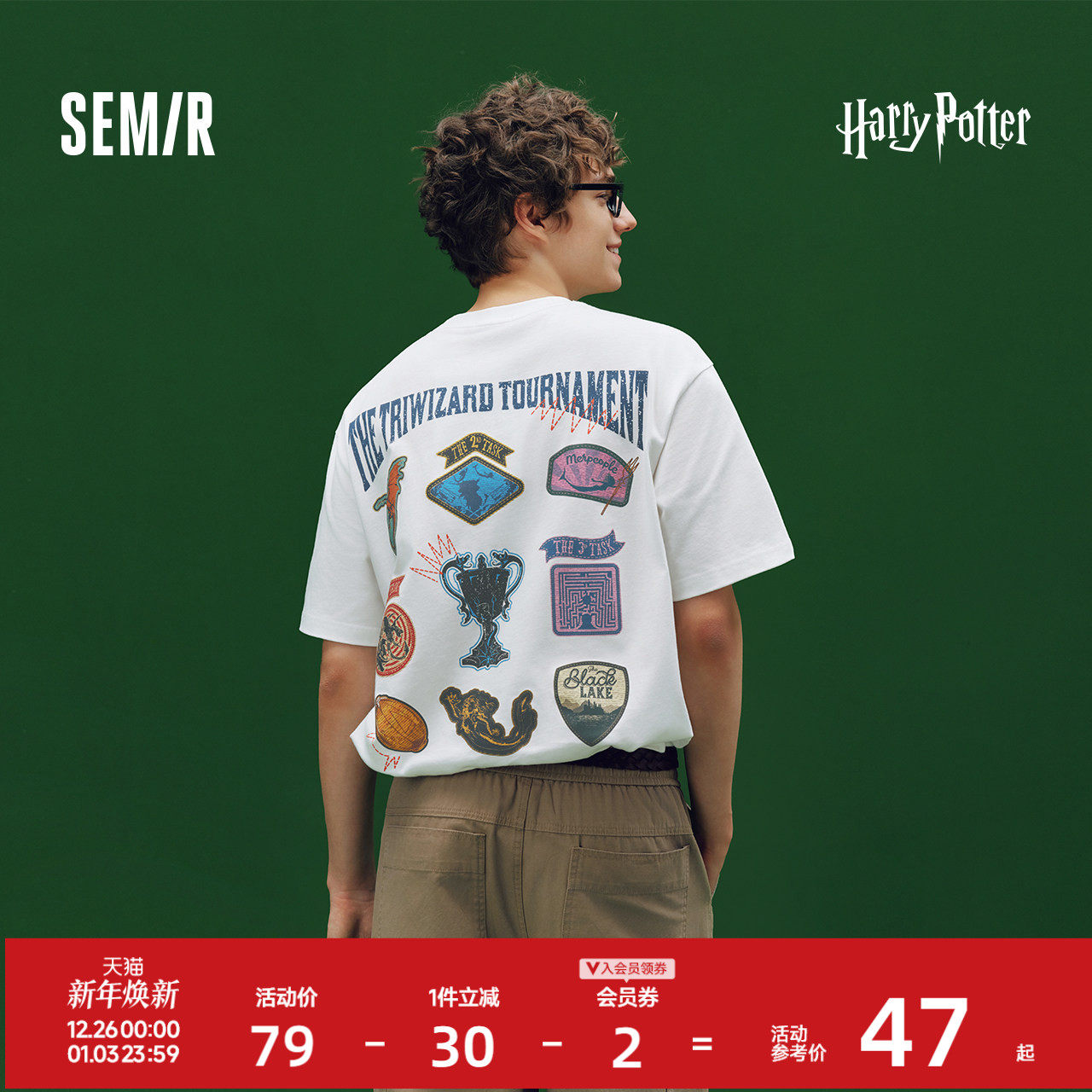 森马哈利波特联名短袖T恤男美式印花情侣装2025新款夏装纯棉潮流