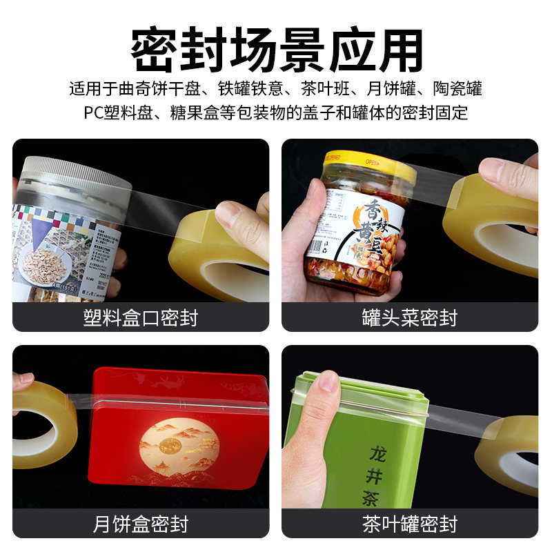 食品封口胶带透明不留胶PVC马口铁盒塑料盒饼干盒超市糖果燕窝礼品茶叶罐玻璃酒瓶口封边无痕不残胶密封贴胶
