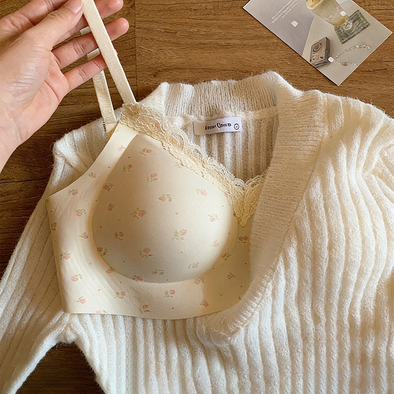 无痕内衣女小胸聚拢夏季薄款运动一体美背心式固定杯无钢圈文胸罩