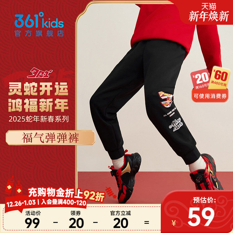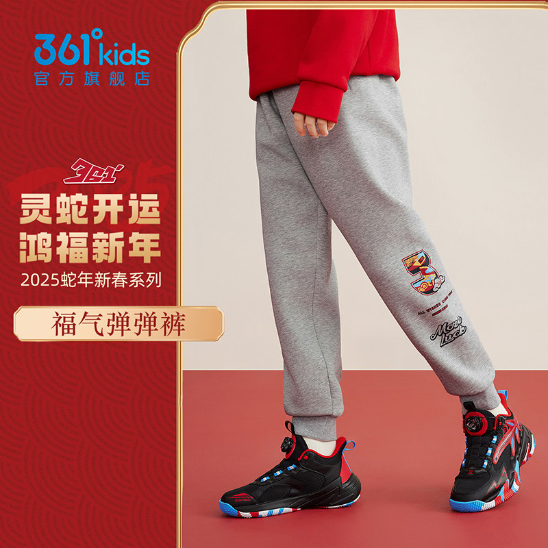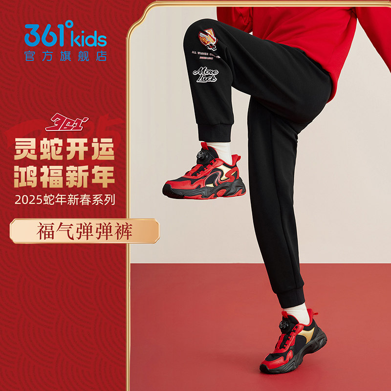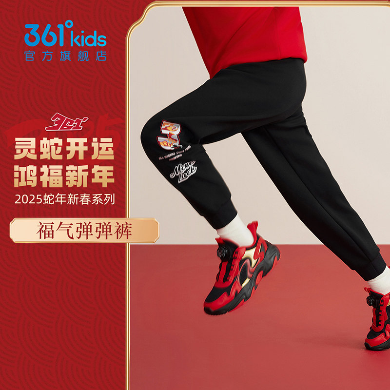 【新年款】361°童装男童针织长裤2025新款拜年中大童红色运动裤