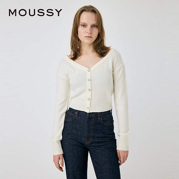 moussy 春季前后两穿通勤花朵纽扣针织开衫010HAH70-9191