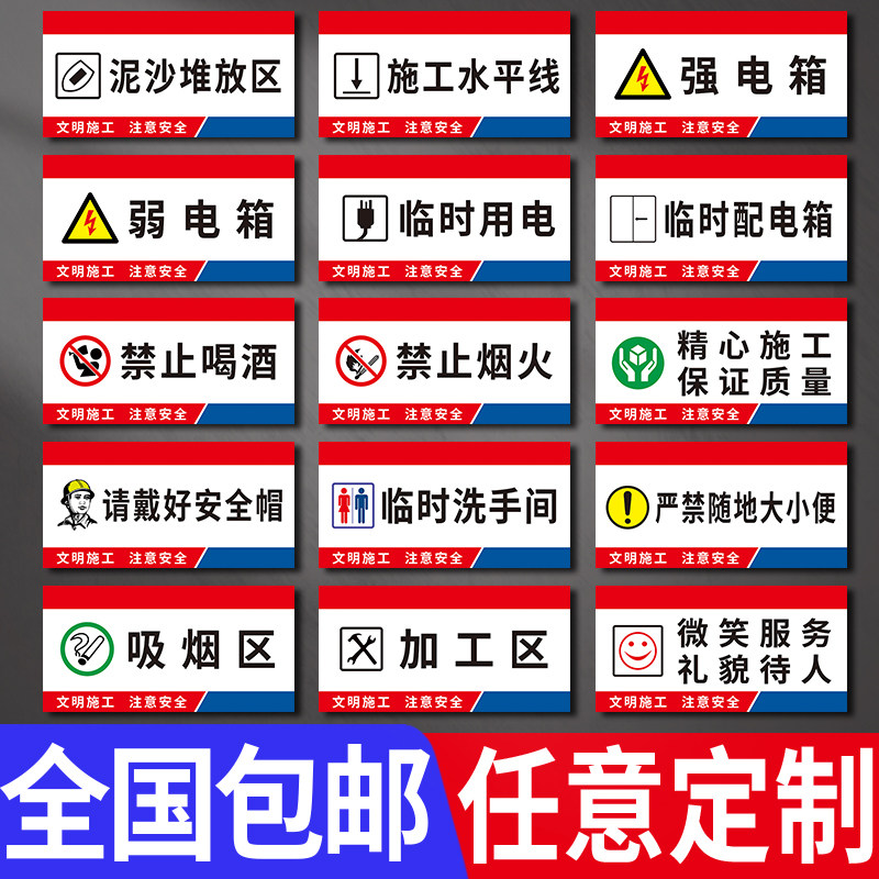 工地施工标识牌 文明施工安全警示牌 装修装饰公司材料油漆水泥板材堆放区分类提示墙贴禁止吸烟标识标志牌
