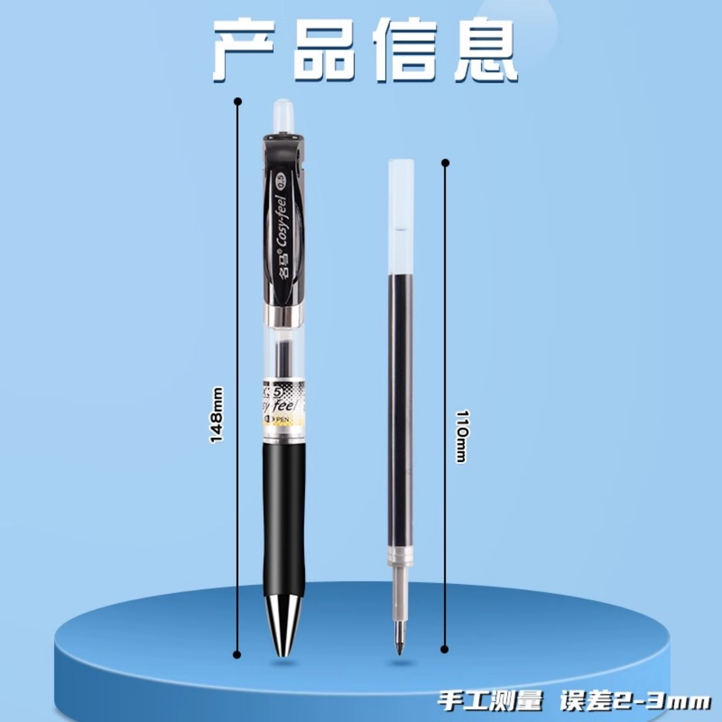 国风桶装刷题笔速干顺滑黑笔高颜值按动中性笔ST0.5黑色笔芯水性圆珠笔小学生专用考试笔非按斤卖碳素签字笔