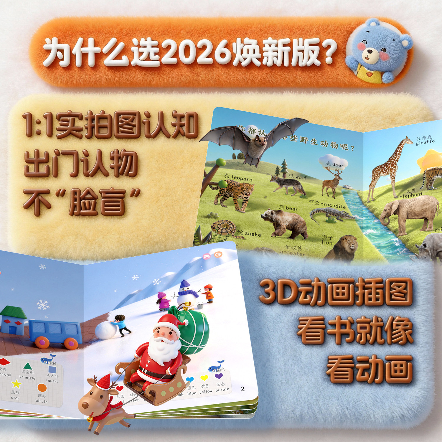 贝灵2026升级新款0-4岁3D认知启蒙换新礼盒儿童开放式点读笔幼儿早教小孩通用万能英语启蒙学习点读机