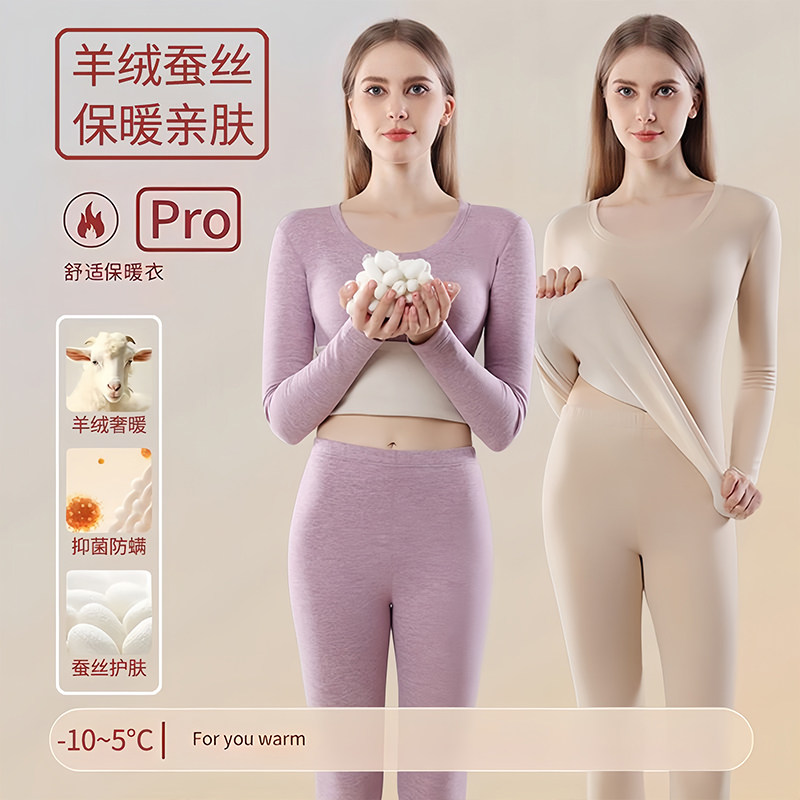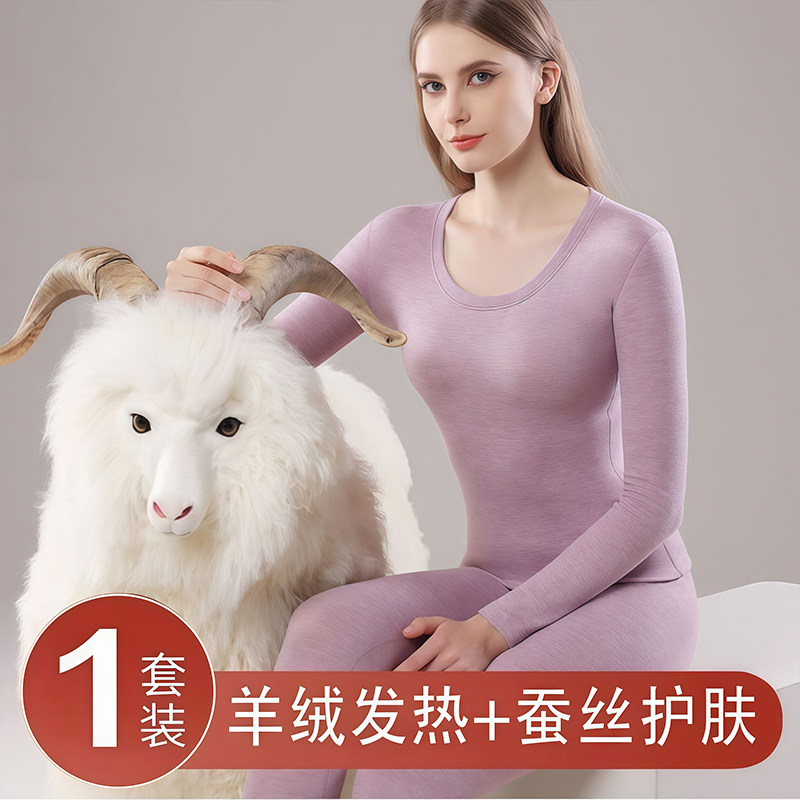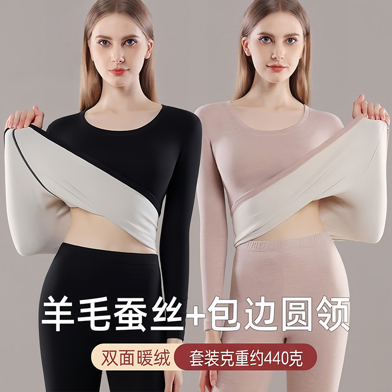 羊绒蚕丝保暖内衣女士防寒保暖套装秋冬季贴身抗菌发热秋衣秋裤女