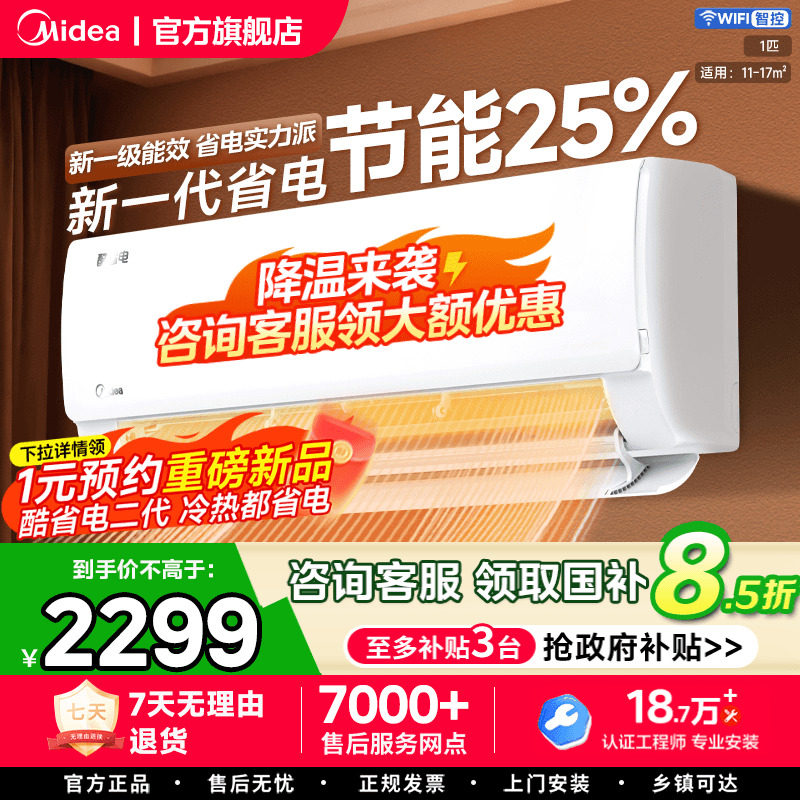美的空调酷省电Pro大1匹1.5匹一级能效变频冷暖家用挂机官方正品