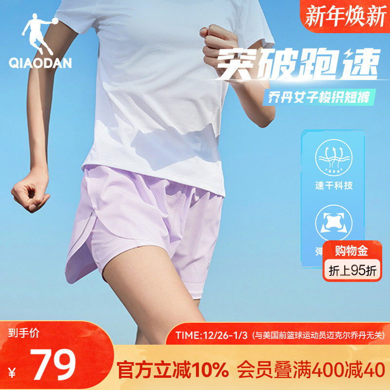 乔丹假两件跑步女生短裤高弹2025夏季新款吸湿速干专业健身瑜伽