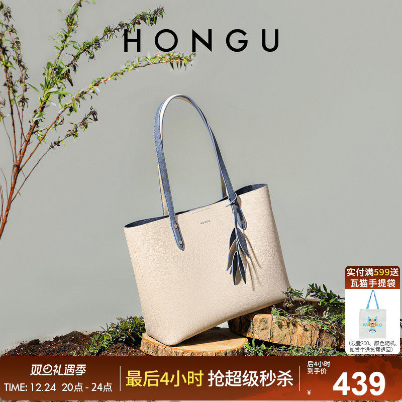 红谷包包新款牛皮单肩手提包时尚通勤大容量妈妈托特包女士包大包