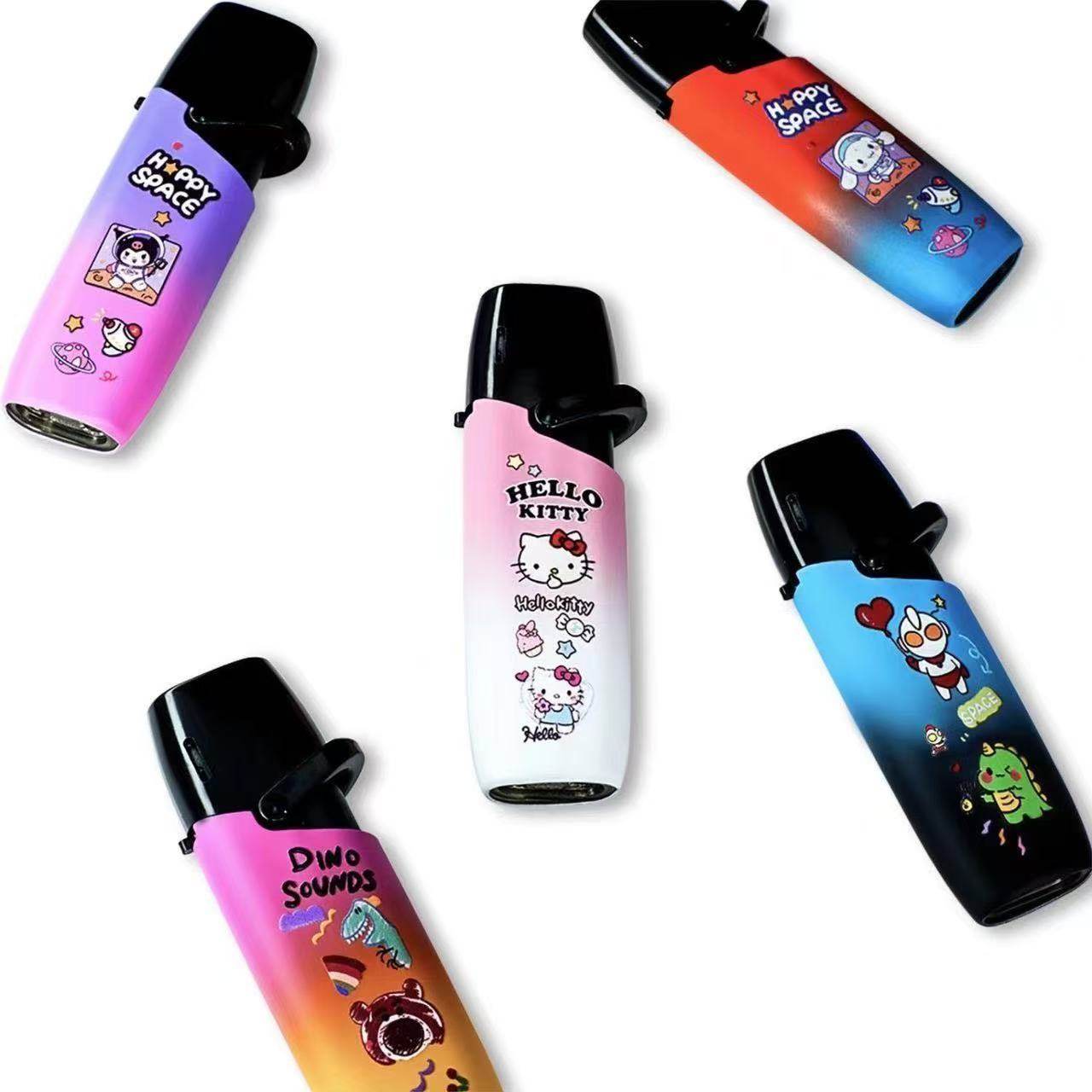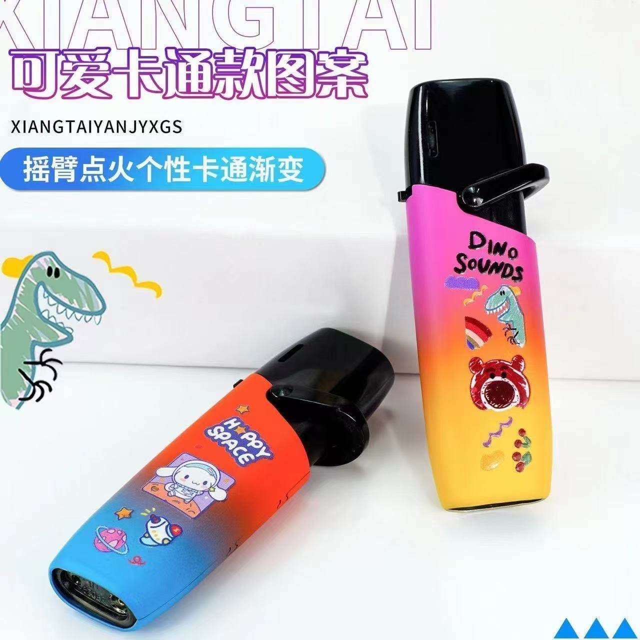 网红防爆金属卡通图案渐变色摇臂充气防风打火机蓝焰直冲商超批发