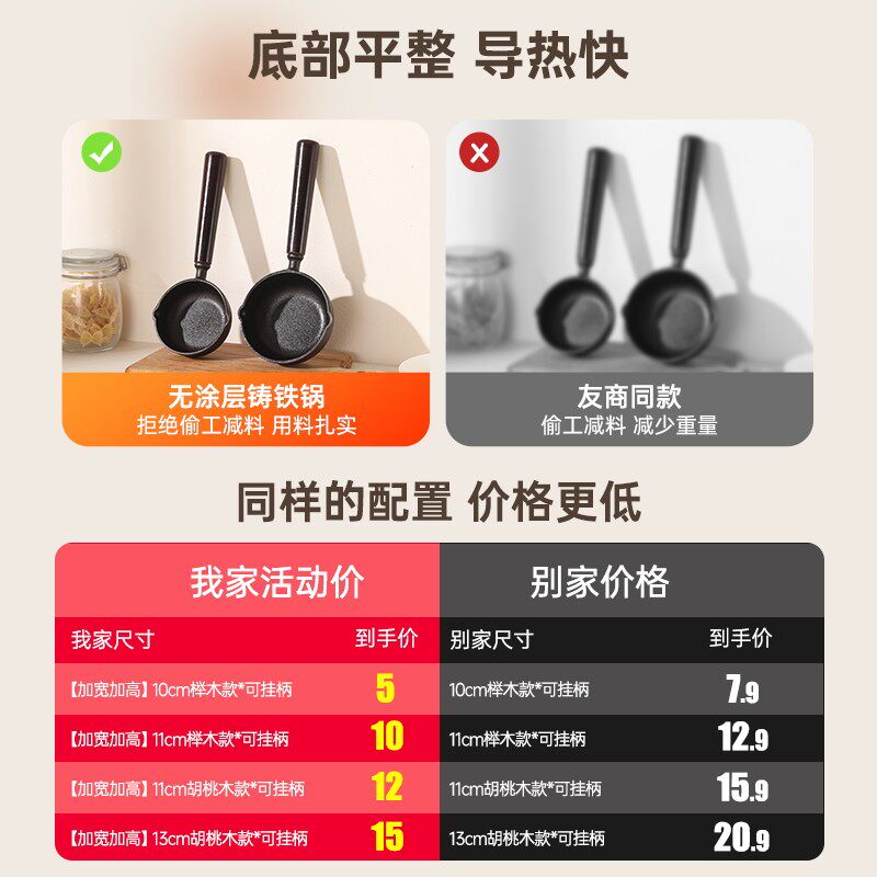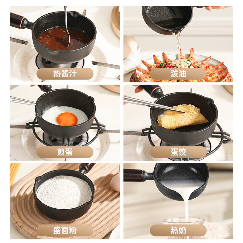 热油专用小锅铸铁加深煎蛋锅泼油锅平底锅神器小铁锅蛋饺燃气灶