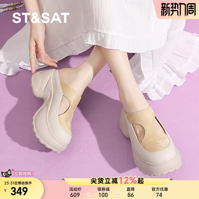 星期六2025夏季厚底包头拖鞋外穿增高懒人凉拖鞋女鞋镂空简约时尚