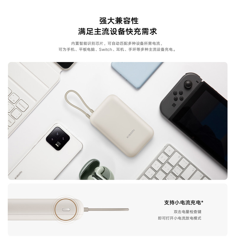 小米自带线充电宝10000mAh口袋版轻薄便携Type-C22.5W双向快充