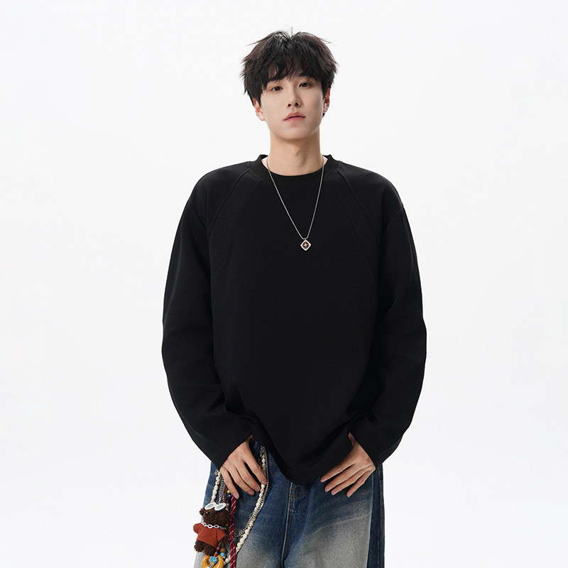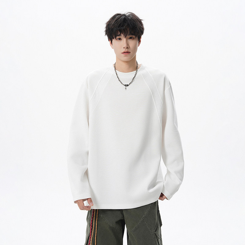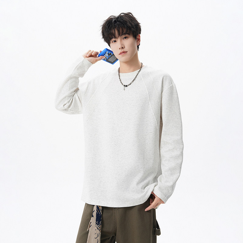 重磅长袖T恤男款秋季2025新款空气层宽松潮牌插肩袖圆领打底衫男