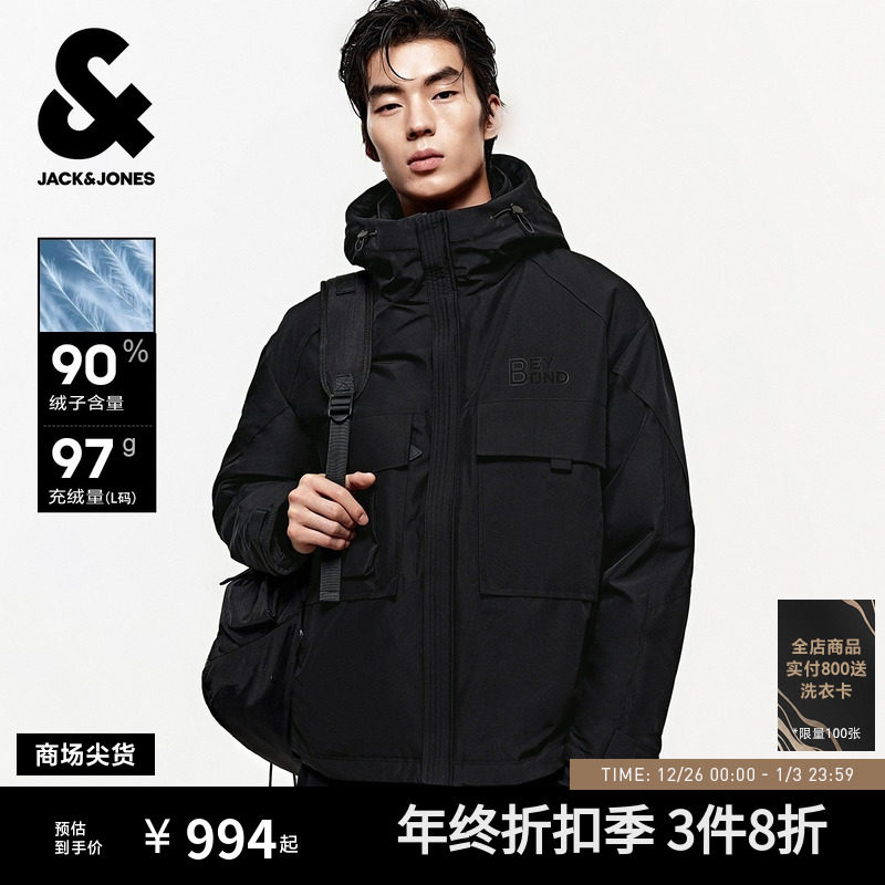 [商场尖货]杰克琼斯秋冬新款时尚工装风外套纯色连帽羽绒服男装