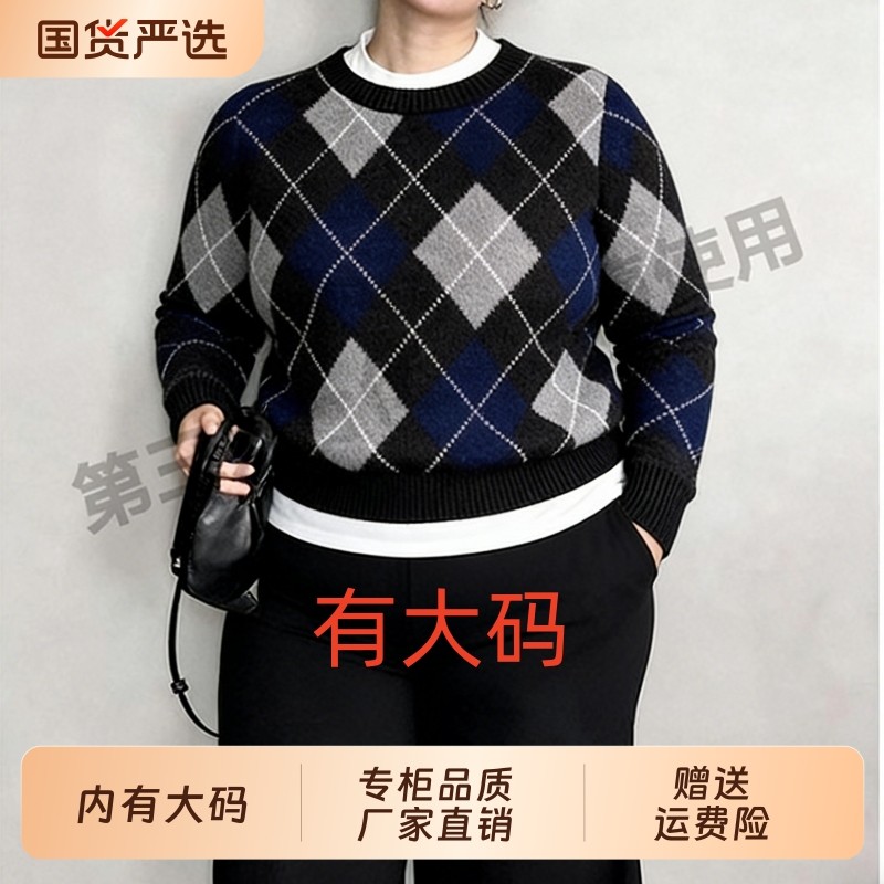 胖mm秋冬基础大领打底衫木子理想大码女装舒适女人味针织衫200斤