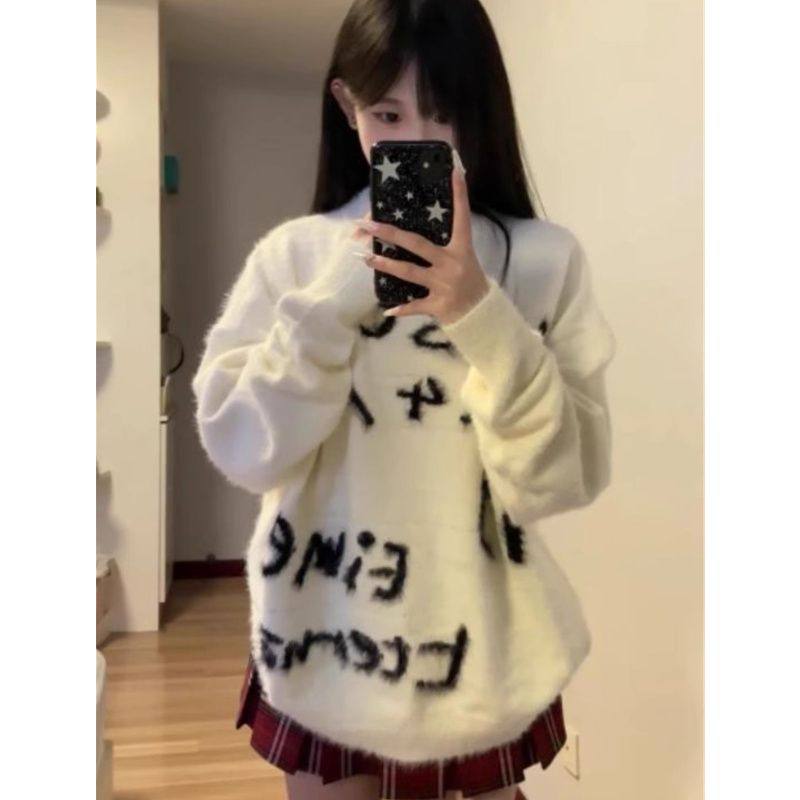 日系慵懒风水貂绒毛衣外套女秋冬加厚大码内搭oversize针织上衣
