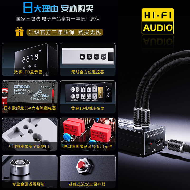 KA1000发烧级电源滤波器HIFI排插遥控器智能音响净化器抗干扰防雷