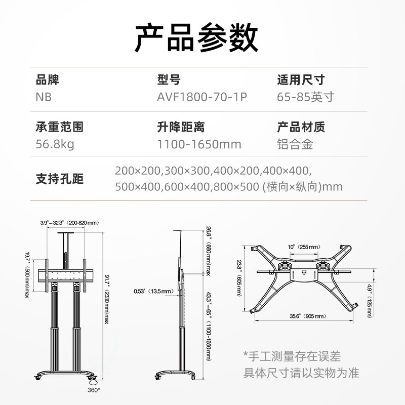 NB AVF1800电视挂架移动视频会议推车落地支架展示架通用55/75寸