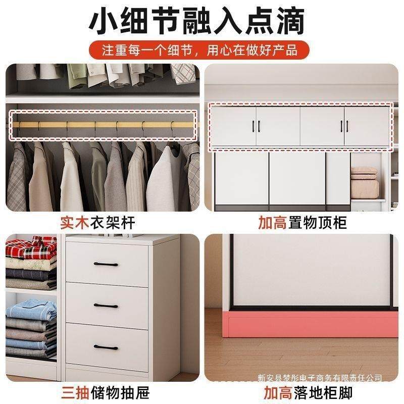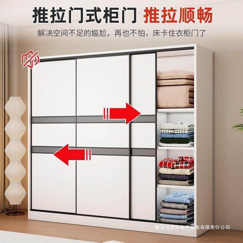 全实木衣柜家用卧室深儿童出租房推拉门衣橱简易收纳柜