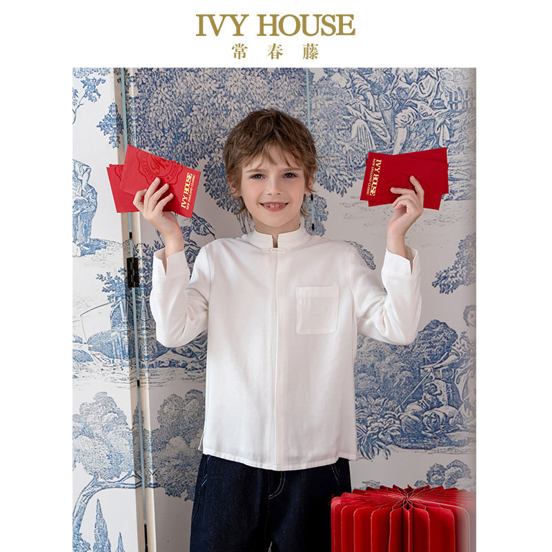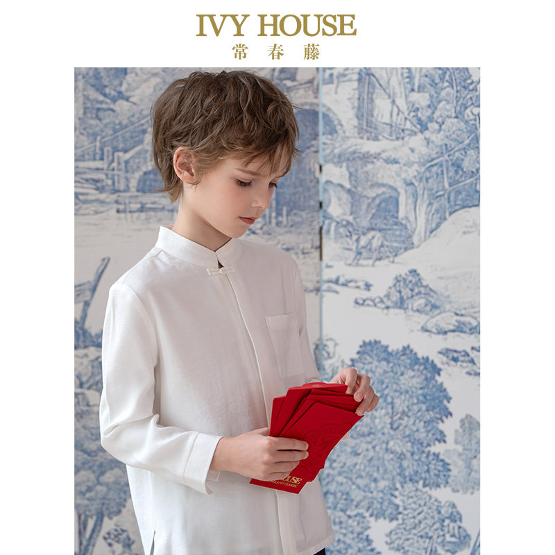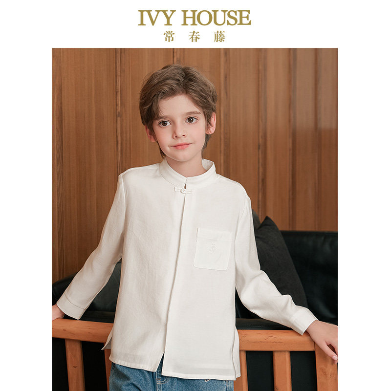 IVY HOUSE常春藤男女童装2025秋新款 新中式长袖衬衫国风吉祥刺绣