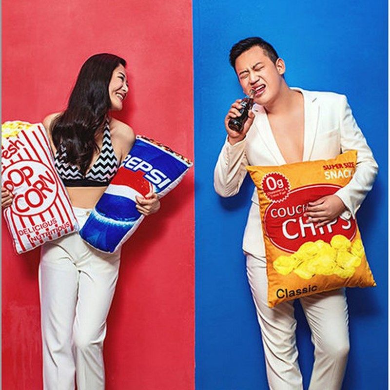 速发影儿楼童创意乐性抱枕食物旅拍街拍摄影道具婚纱薯条可个爆米
