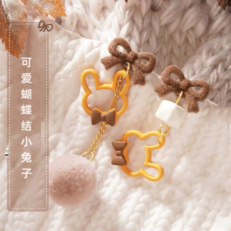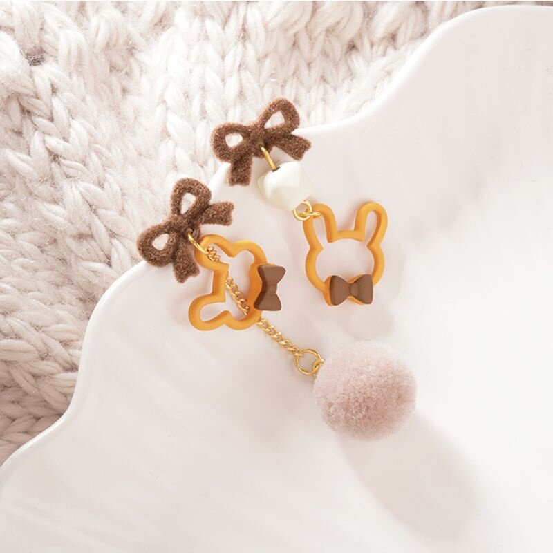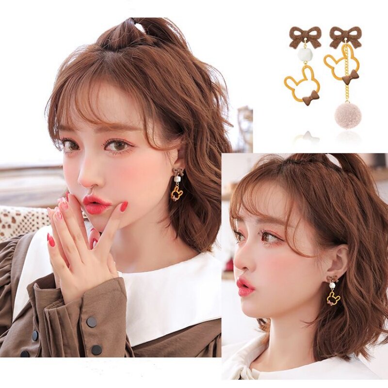 原创爱心小熊秋冬不对称耳环新款甜美耳钉可爱少女无耳洞耳夹耳饰