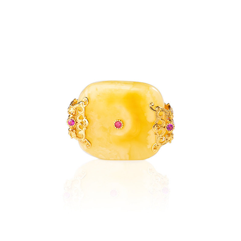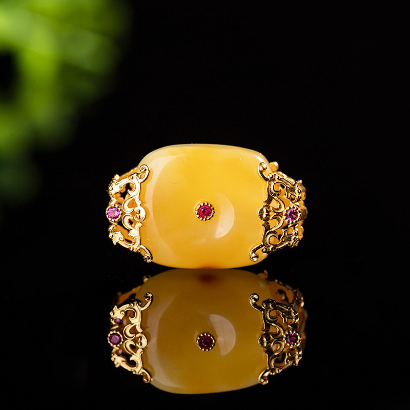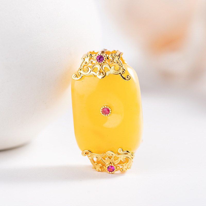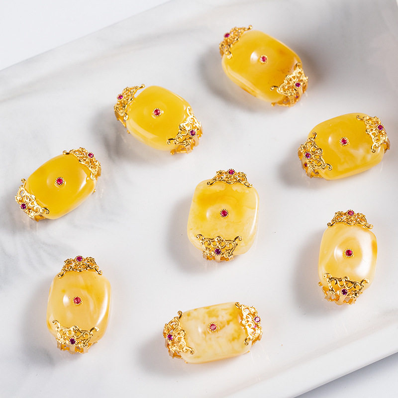 星雨 天然琥珀蜜蜡方牌手牌双耳 925银镀金镶嵌手链DIY饰品配件