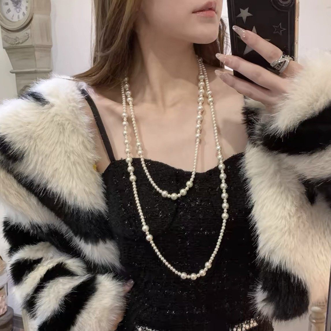 韩版珍珠项链配饰挂件欧美复古饰品秋冬多层长款毛衣链女双层三层
