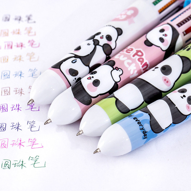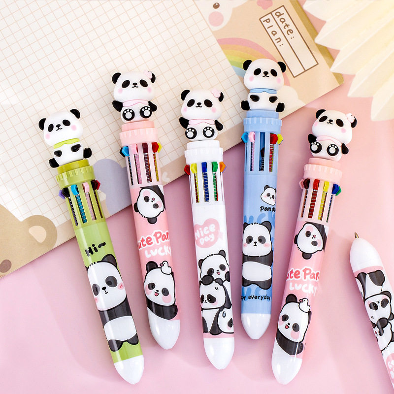 个性创意熊猫十色圆珠笔学生少女心笔10色笔可爱十色合一手账笔按