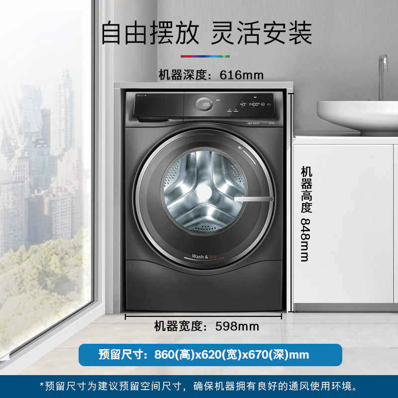【焕新补贴】博世6系10公斤滚筒洗烘一体机智投除菌除螨洗衣机